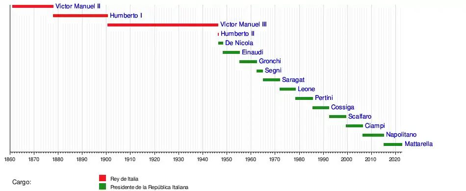 Esta posición fue ocupada de 1861 a 1946 por el Rey y de ese año hasta la actualidad ha sido ocupada por el Presidente.
