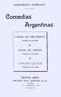 - Tipos y Paisajes III serie (año 1903)Comedias argentinas, publicado en 1909 por Godofredo Daireaux.