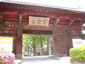 Esta puerta conduce al Hondō (edificio principal). Su estilo no es propio de santuarios y templos, sino de mansiones de los daimyo. Como la puerta estaba dedicada al quinto Shōgun Tsunayoshi Tokugawa y Keishōin, eran las únicas personas a las que se les permitía caminar a través de esta.