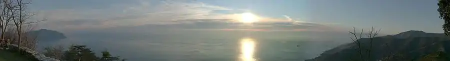 Vista del golfo Paradiso desde la cima del Monte Santa Croce, en el municipio de Pieve Ligure.
