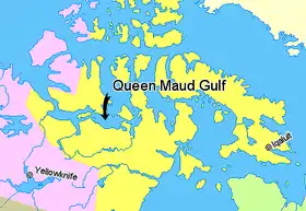 Estrecho de Dease (con el golfo de la Coronación) Estrecho Victoria (con el Viscount Melville Sound) Estrecho de Simpson (con el estrecho de Rae). | |
