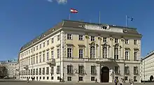 ![]() Blindado de la policía en la Ballhausplatz, junto a la cancillería. | ||