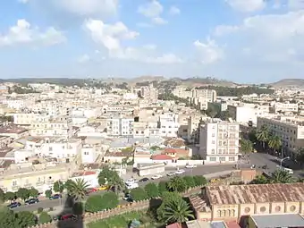 ![]() Vista panorámica de Asmara, ciudad a la que llegó el emperador Haile Selassie al enterarse del golpe. | ||