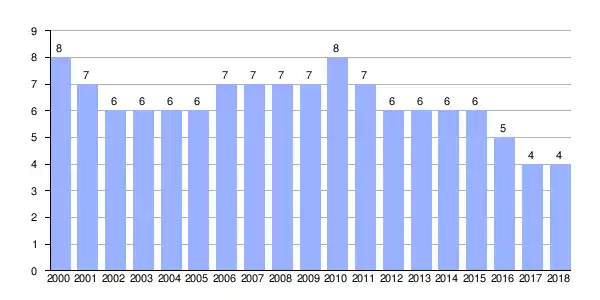 Gráfica de evolución demográfica de Gomil entre 2000 y 2018 |