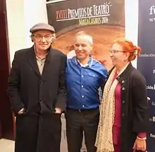 ![]() Gonzalo Uriarte (izquierda) con Avelino González (centro) en la entrega de Premios María Casares 2014. | ||