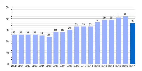Gráfica de evolución demográfica de Gordéliz[2] entre 2000 y 2017 |