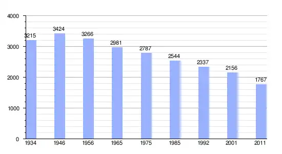 Gráfica de evolución demográfica de Gorna Mitropoliya entre 1934 y 2011 |