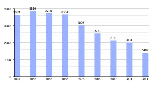 Gráfica de evolución demográfica de Gorni Dabnik entre 1934 y 2011 |