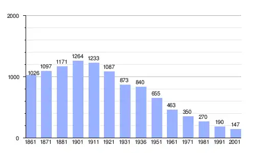 Gráfica de evolución demográfica de Gorreto entre 1861 y 2001 |