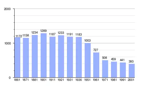 Gráfica de evolución demográfica de Gorzegno entre 1861 y 2001 |