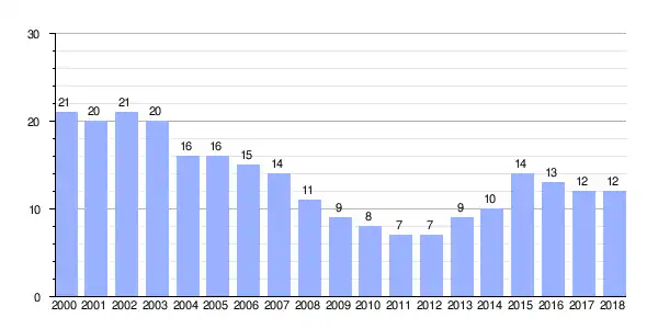 Gráfica de evolución demográfica de Gosende entre 2000 y 2018 |