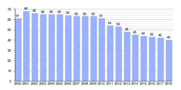 Gráfica de evolución demográfica de Gosende entre 2000 y 2018 |