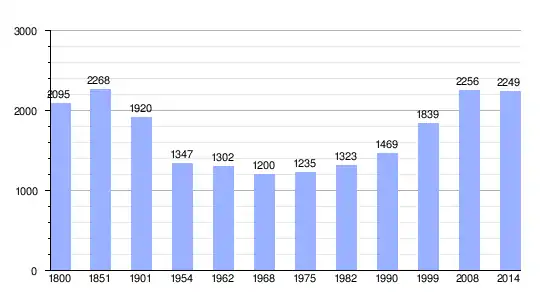 Gráfica de evolución demográfica de Gouville-sur-Mer entre 1800 y 2014 |