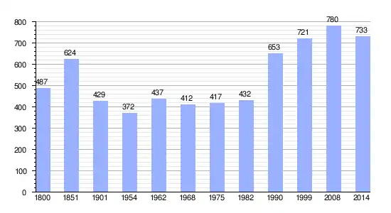 Gráfica de evolución demográfica de Gréville-Hague entre 1800 y 2014 |