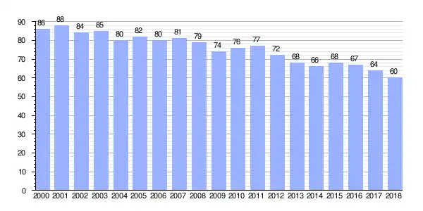 Gráfica de evolución demográfica de Graña entre 2000 y 2018