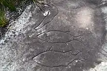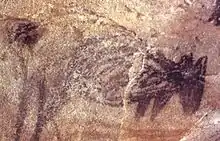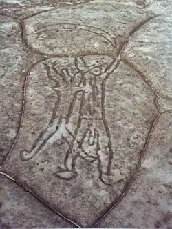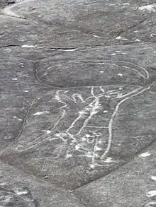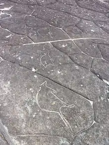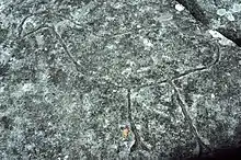 - Presumiblemente, se dibujo un bosquejo de contorno raspado en la superficie de la roca.