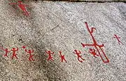 - 34,7 km Sur: Backa, 1 km al norte de Brastad, Communa de Lysekil, grabados
