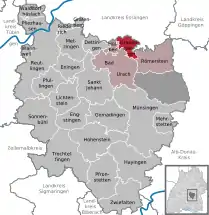 Se encuentra ubicado en el centro del estado, en la región de Tubinga, en la zona montañosa del Jura de Suabia, entre los ríos Neckar —al norte— y Danubio —al sur—.