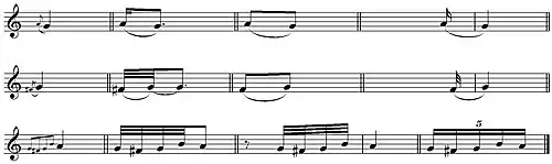 Una nota grace o nota de gracia es un tipo de notación musical que representa diversos tipos de adornos musicales.[1] Por lo general se la imprime en tipografía más pequeña para indicar que no es un elemento esencial desde un punto de vista melódico y armónico. Cuando expresada en forma aislada, una nota grace aislada por lo general representa una acciaccatura. Cuando se las escribe en grupos, las notas grace pueden ser interpretadas como indicando diversas clases diferentes ornamentos, dependiendo de la interpretación.