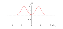 y que . No obstante, la coherencia de segundo de orden para un promedio sobre franjas de salidas complementarias de un interferómetro para un estado coherente es solo 0.5 (incluso aunque Para cada salida). Y (calculado mediante promedio) puede ser reducido hasta cero con una discriminación apropiada del nivel de "trigger" aplicada a la señal (dentro del rango de coherencia).