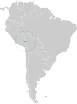 Se distribuye por la pendiente oriental de los Andes de Perú del departamento de Puno y del extremo occidental del departamento de La Paz, en Bolivia, en altitudes entre 2900 y 3150 m.[1]
