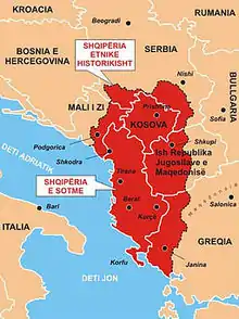 El término Gran Albania, además de Albania, se refiere también a los territorios que están fuera de las fronteras de ese país que los nacionalistas albaneses reclaman como propias, es decir, partes de Grecia, Macedonia del Norte, Montenegro, Kosovo y Serbia. Todos los territorios reclamados tienen una gran población albanesa mayoritaria, excepto Epiro (Çameria), por el antiguo reino helenístico.