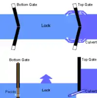 El primer proyecto de construcción de diques en el 587 a lo largo del río Amarillo —supervisado por el ingeniero Liang Rui— estableció esclusas de bloqueo en el canal para regular los niveles de agua.[9] Se instalaron varaderos dobles también para embarcaciones de distancia cuando la diferencia en los niveles de agua era demasiado grande para que las esclusa de vertido funcionasen.[9]