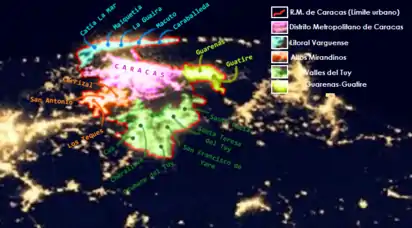 La Gran Caracas es una aglomeración urbana que cubre el extinto Distrito Metropolitano de Caracas y ciudades satélites como Los Teques, San Antonio de Los Altos, Maiquetía, La Guaira, Guarenas, Guatire, Cúa y otras poblaciones del estado Miranda y del estado La Guaira. Es un concepto de conveniencia comercial para encapsular a un área mercantil separada por varias entidades administrativas que en la práctica encierran un mercado común y geográficamente unido. Es el área metropolitana más grande, extensa y poblada de Venezuela, su área urbana es la 9ª en Latinoamérica y es la 80ª mayor área metropolitana del mundo, con una población de 5,6 Millones de personas para el 2021 .