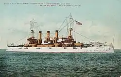 El Primer Escuadrón y la Primera División, comandadas por el contraalmirante Robley Evans, consistía en cuatro acorazados de la clase Connecticut: el Connecticut, buque insignia de la flota; el Kansas, el Vermont, y el Lousiana.