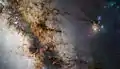 - Amplio ángulo de visión de la Vía Láctea cerca de la constelación Cygnus mostrando el carril oscuro de La Gran Grieta.