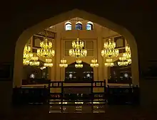 La base de toda la estructura está elevada unos seis metros por encima del terreno, y la azotea alcanza los 24 metros de altura. Cuatro minaretes de 50 metros de altura marcan las esquinas del edificio. La mezquita tiene seis puertas de madera con forma de arco y su interior exhibe blancas lámparas de araña, azulejos y frescos de extraordinaria belleza. La cúpula central es la joya de la corona de esta magnífica pieza de artesanía, y tiene una altura de 12 metros y un diámetro de 15 metros.[7]