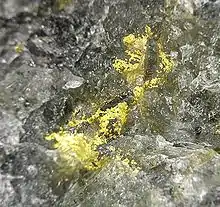 - Yacimiento «duro»: presentaba contenidos altos de oro y cobre, y estaba formado por asociaciones de calcopirita, pirita y esfalerita, que se podían encontrar de manera diseminada o formando vetas, junto con minerales accesorios como pirrotina, magnetita, oro y minerales de bismuto.