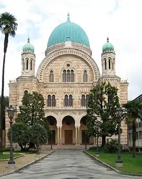 La Gran Sinagoga de Florencia (en italiano, Tempio maggiore di Firenze) es una destacada sinagoga de la ciudad de Florencia, Italia. Considerada una de las sinagogas más importantes construidas en la Europa del período de la emancipación judía,[1] la Gran Sinagoga ha sido el centro emblemático de la vida judía florentina, un lugar de culto y una parte integral de la historia de la ciudad.[2] En la actualidad, sirve sobre todo como atracción turística, museo y lugar de celebración de eventos culturales. La inconfundible cúpula verde de la Sinagoga se puede distinguir claramente desde diferentes puntos panorámicos de Florencia, como el Piazzale Michelangelo, la Cúpula de Brunelleschi o el Campanario de Giotto.
