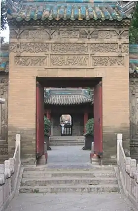 Después de cruzar una otra puerta que fue la original construida en la dinastía Tang, los creyentes deben hacer lavabo en el cuarto de izquierda. En cuento a las habitaciones a la derecha, se usan de pequeña escuela que da cursillos del idioma árabe a la gente de Alá para que lea Corán. Delante de nosotros se levanta Xing-Xin Lou donde los creyentes reflexionan con frecuencia sobre sus errores y el imam canta sutras. Dentro del edificio, se ven cerradas unas cajas de madera que se utilizan para calcular el inicio del Ramadán. En sus paredes se ven diseños de nenúfares y en suelo, relieves con imagen de dragón mostrando su consenso a la política religiosa de China.