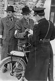 Una parte sustancial de la policía pertenecía al Armia Krajowa de la resistencia polaca,[25] principalmente su contrainteligencia y el Cuerpo de Seguridad Nacional.[26] Algunas estimaciones llegan a cifrarla en un 50%.[27] Piotrowski escribe que, a pesar de las críticas mordaces de Emanuel Ringelblum, se sabe que la Policía Azul había rechazado las órdenes alemanas,[15] a menudo "gritando en las calles y rompiendo puertas para darles a las personas tiempo para escapar u ocultarse".[28] Los oficiales que desobedecieron las órdenes alemanas lo hicieron a riesgo de muerte.[12] Algunos que actuaron contra las órdenes fueron finalmente reconocidos como Justos entre las Naciones:[29][30] Wacław Nowiński,[31] Bronisław Marchlewicz (2004), Władysław Cieśla (1988), Franciszek Banaś (1980), Piotr Czechoński (1999), Jan Fakler (1974), Jan Kubicki (1976), Stanisław Śliżewski (2008), Władysław Szalek (1979), Grzegorz Czyżyk (2013), Michał Gerula (1995), Paweł Gołąbek (2001), Telesfor Hadrysiak (2007), Władysa Książek (1998), Stefan Matacz (2011) y Stanisław Ratyński (1991) (ver y comparar: Bartoszewski y Lewin, "Justos entre las naciones", y la lista de premios de Yad Vashem).