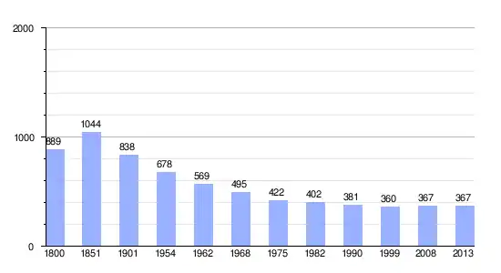 Los datos demográficos contemplados en este gráfico de la comuna de Grandchamp[4] se han cogido de 1800 a 1999 de la página francesa EHESS/Cassini, y los demás datos de la página del INSEE.[5]