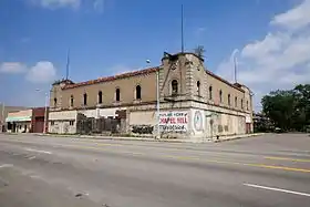 El primer piso originalmente tenía seis escaparates, cada uno con grandes ventanales de vidrio y travesaños de vidrio prismático en la parte superior. Durante los años fueron alterados profundamente y en la actualidad están tapiados y quedan pocos vestigios de su diseño original. Las tres esquinas del salón de baile que dan a la calle tienen cada una una torre ligeramente saliente con una tapa octogonal, una urna decorativa y un diseño de estrella en el centro de cada cara, así como un techo bajo de tejas a cuatro aguas en la parte superior.[13] Todos esos elementos se encuentran en estado de abandono y tanto el interior como el exterior del edificio están severamente deteriorados.[1]