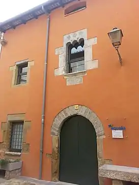 El primer piso tiene tres ventanas. De las de la crujía del número 27 se ha retirado la mayor, ya que se están haciendo obras en el interior. Esta es, por documentación fotográfica, de antepecho moldurado, montantes y dintel de piedra, la más grande del edificio. Por dintel tiene tres arcos de medio punto sin apoyos columnata y decoración geométrica encima, formada por tres rosetones. La ventana pequeña es enmarcada de piedra y de dintel monolítico. La ventana de la crujía del número 29 tiene una ventana con antepecho, montantes, impostas y dintel horizontal monolíticos. Las impostas están avanzadas y tienen uno de los ángulos interiores cortado en forma de cuarto de círculo.[1]