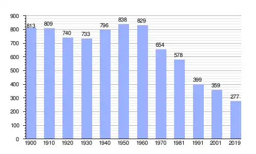 Gráfica de evolución demográfica de Granja de Moreruela entre 1900 y 2019 |