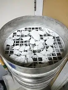 Esta operación se puede llevar a cabo en seco, y vibrando la totalidad de la columna de tamices en el caso de granos de tamaño relativamente grande. Cuando la población de granos tiene algunos elementos muy finos, se puede utilizar una depresión que forme una corriente de aire controlada. Cuando el tamaño del grano es menor que 300 µm, es necesario operar bajo una corriente de agua (o alcohol para productos no solubles en agua). Cada residuo se seca y se pesa.