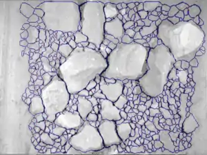 La granulometría óptica es el proceso de medición de diferentes tamaños de grano en un material granular basado en una fotografía. [1]