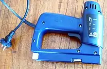 Una grapadora eléctrica es una máquina de mano usada para manejar grapas de metales pesadas en la madera o la albañilería. Las grapadoras se utilizan para diversas aplicaciones y para fijar una variedad de materiales, incluyendo aislantes, el material que cubre una casa, techos, cableado, alfombrado, tapicería y materiales para pasatiempos y arte.