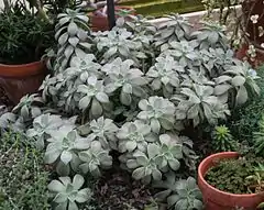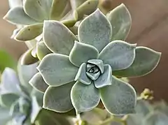Graptopetalum paraguayense tiene flores blancas en forma de estrella y suele usarse en jardinería como planta ornamental.[1]