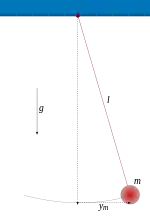 Un péndulo matemático es un péndulo ficticio. Está formado por una masa puntual m sujeta por un hilo de masa despreciable y longitud l, que puede oscilar sin fricción en torno a su punto de suspensión o pivote. El movimiento de la masa está restringido a describir un arco circular alrededor del punto de equilibrio. La coordenada para un punto de la trayectoria es , donde es el ángulo de deflección del hilo.