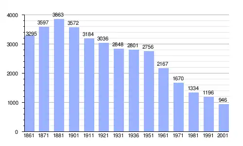 Gráfica de evolución demográfica de Greci entre 1861 y 2001 |