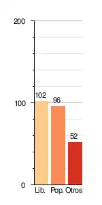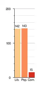 Partido Popular (60) Partido de la Libre Opinión (52) Otros antivenicelistas (15) Unión de Liberales (108) Partido Agrario-laborista (17) Otros venicelistas (18) Partido Agrario (4) Partido Comunista (10) Otros (2) |