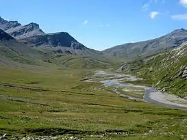 La Greina (el. 2355 m. ) (En italiano: Passo della Greina, romanche: Pass Crap ) es un puerto de alta montaña que cruza los Alpes lepontinos occidentales, conectando Sumvitg en el cantón de Graubünden en Suiza y Olivone en el cantón de Ticino . El paso se encuentra entre Piz Medel en el norte y Pizzo Marumo, Piz Terri en el sur.