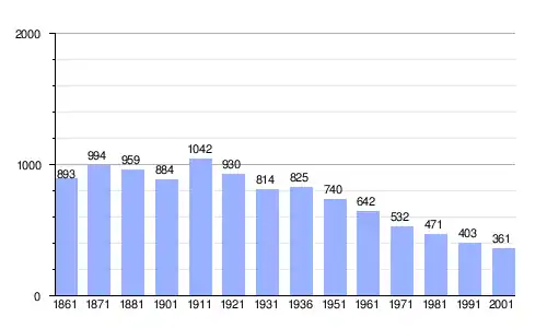 Gráfica de evolución demográfica de Gremiasco entre 1861 y 2001 |