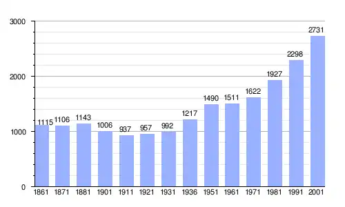 Gráfica de evolución demográfica de Gressan entre 1861 y 2001 |