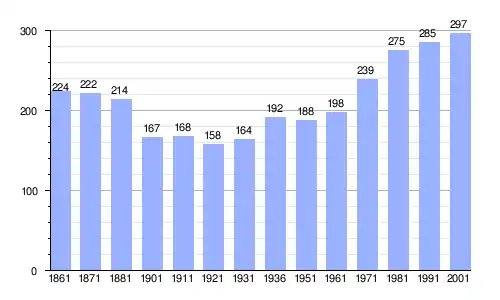 Gráfica de evolución demográfica de Gressoney-La-Trinité entre 1861 y 2001 |